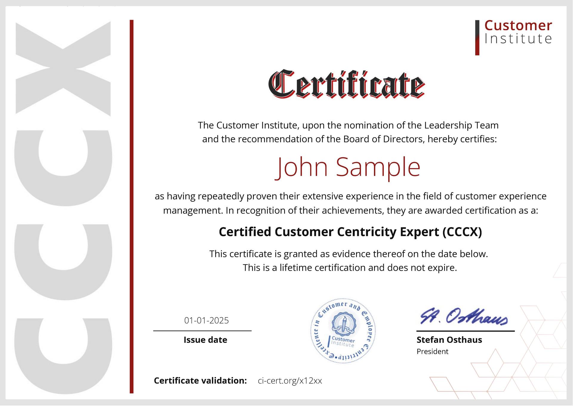 for a Lifetime CCCX Certification from the Customer Institute!