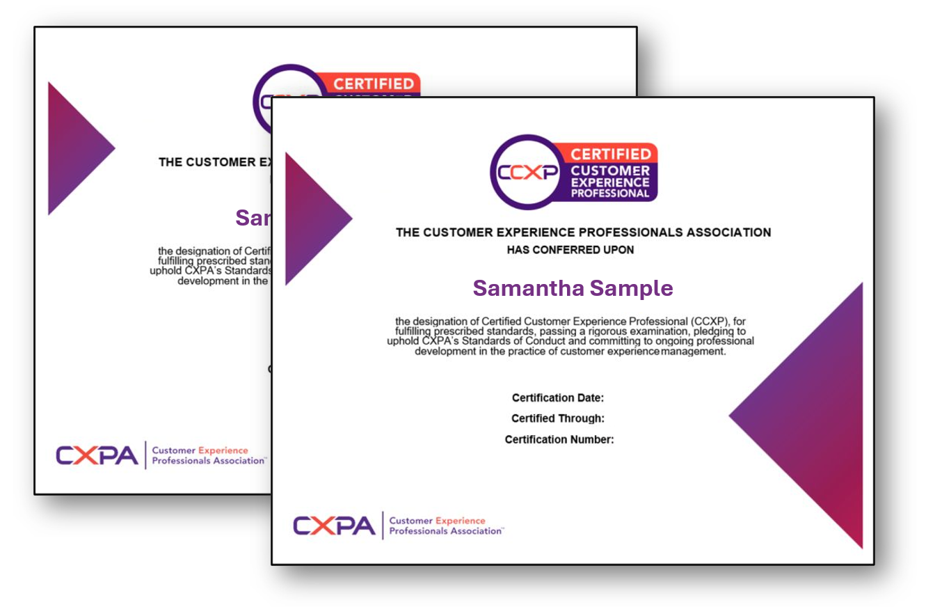 Stand out as a vetted, multi-certified professional in customer centricity — your CCCX credential tells the world you’re not only certified, but certified for life.